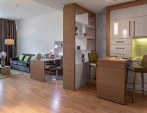 One Bedroom Apartments are 54m2 and come with one queen bed. Spacious, convenient and ideal for business travellers, One Bedroom Apartments are perfect for business travellers or leisure travellers who want that extra bit of privacy. One Bedroom Apartments feature a separate bedroom, living room, fully equipped kitchen, plus everything you need for a relaxing stay including air conditioning, complimentary high-speed WiFi, flat screen TV, separate working area, tea and coffee facilities and ensuite with walk-in power shower and amenities. Maximum occupancy is 3 guests.